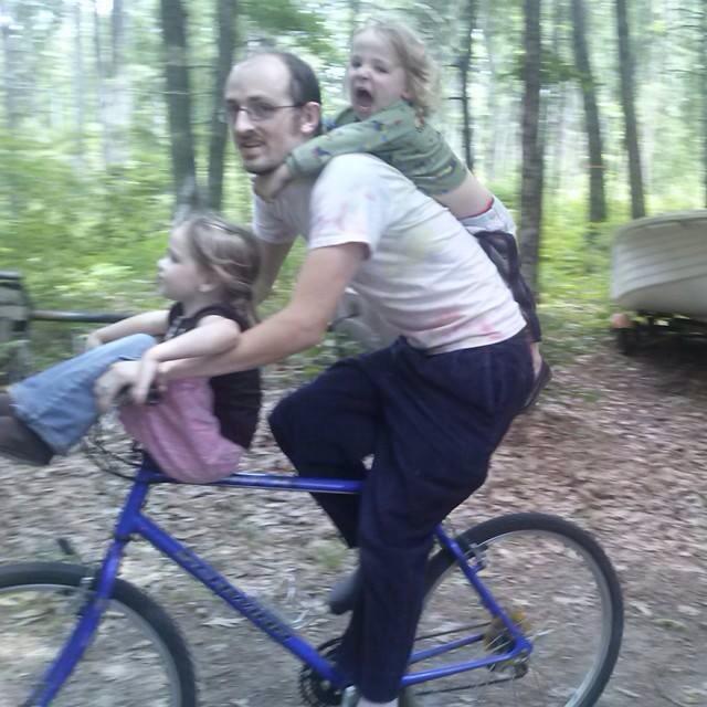 Since Sophia and Thomas can’t quite ride a bike yet on their own, they just catch a ride with me so they don’t miss out on the fun.